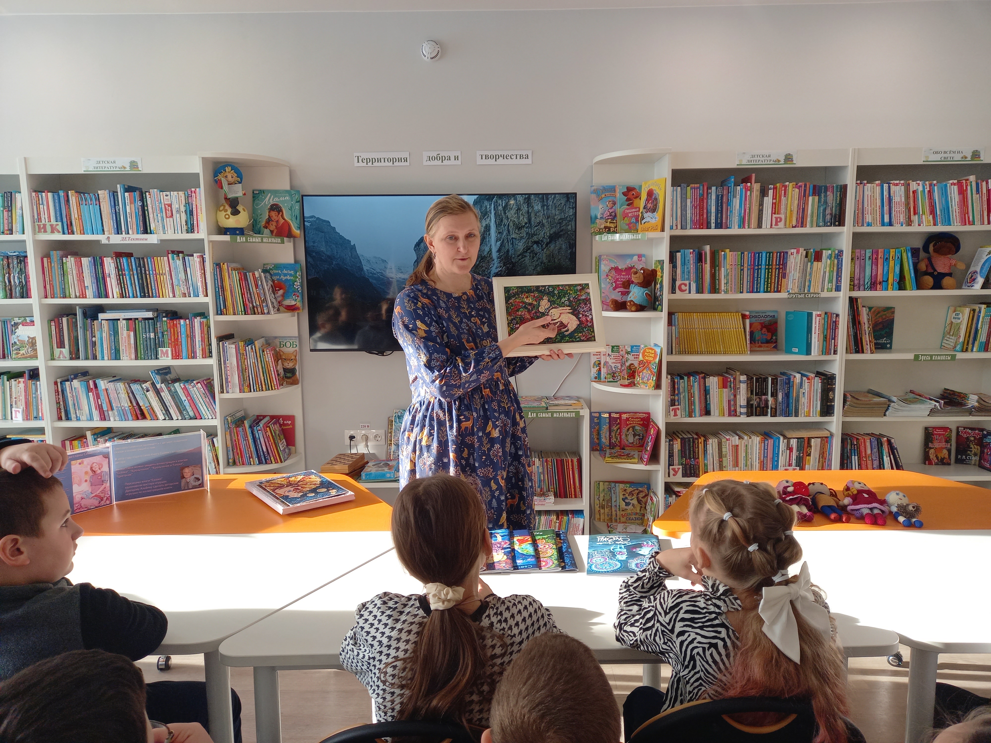 В один солнечный зимний денек добрая сказочница решила навестить деток в селе Октябрьское в их уютной библиотеке. Она рассказала как сочиняет сказки, как создает свои книжки, как появляются сказочные истории и их персонажи и сделала это так, что дети слушали затаив дыхание, в полной тишине.