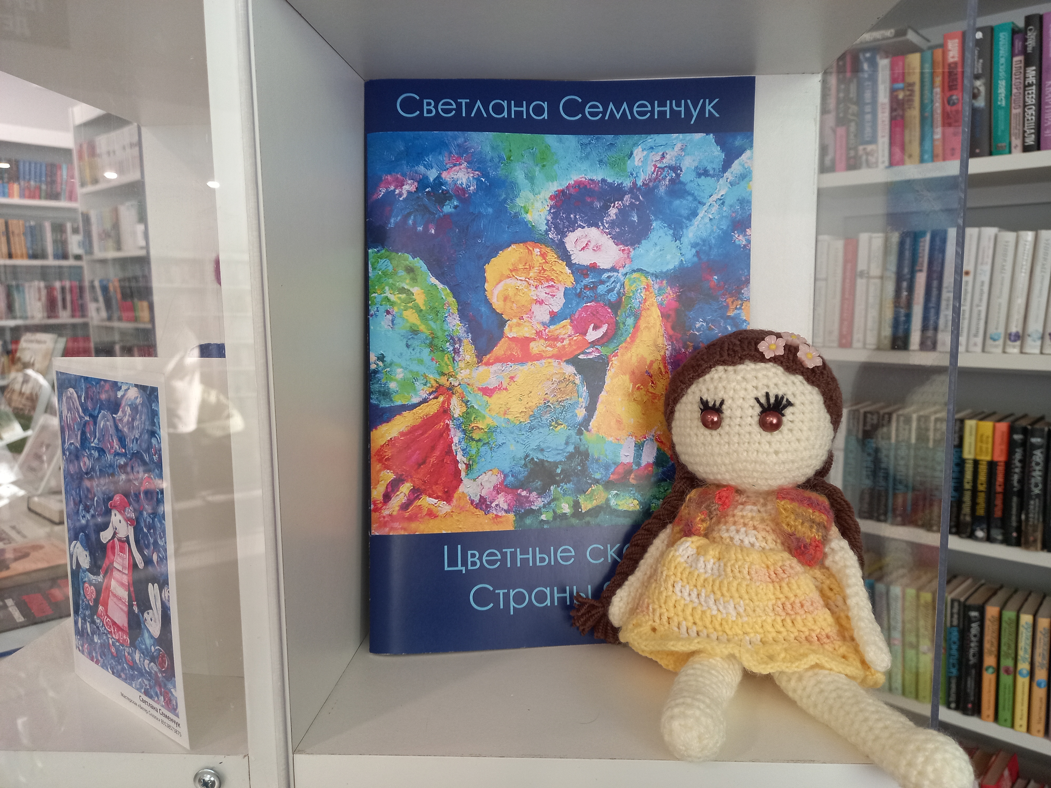 Ребятам очень понравились добрые предобрые сказки писательницы, а сказкам так понравилось гостить в нашей уютной библиотеке, что остались они на подольше. Вязаные куколки и картины тоже захотели остаться с книжками. И теперь каждый может прийти к нам в библиотеку и познакомиться поближе с добрыми историями сказочницы Светланы Семенчук.