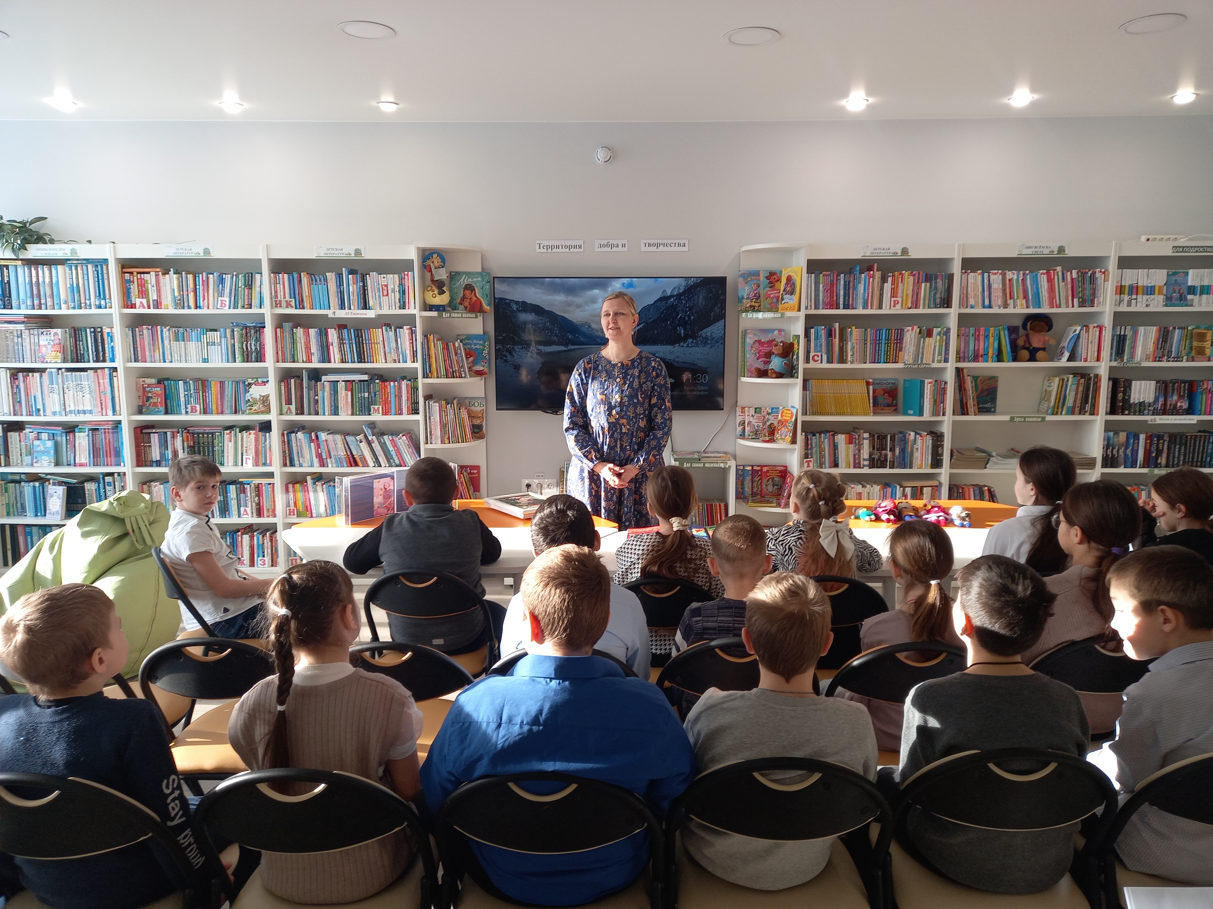 В один солнечный зимний денек добрая сказочница решила навестить деток в селе Октябрьское в их уютной библиотеке. Она рассказала как сочиняет сказки, как создает свои книжки, как появляются сказочные истории и их персонажи и сделала это так, что дети слушали затаив дыхание, в полной тишине.